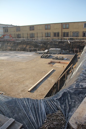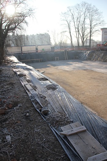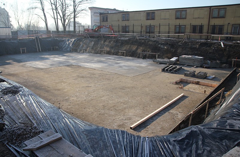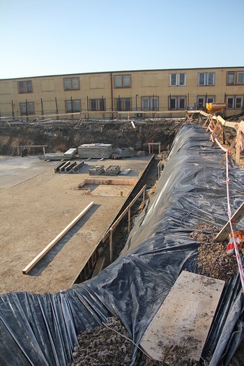 Działka straszy potężnym wykopem (głębokość 3,20 m), a bieżący tydzień upływa pod znakiem zbrojenia i wylewania płyty fundamentowej pod całym obiektem.